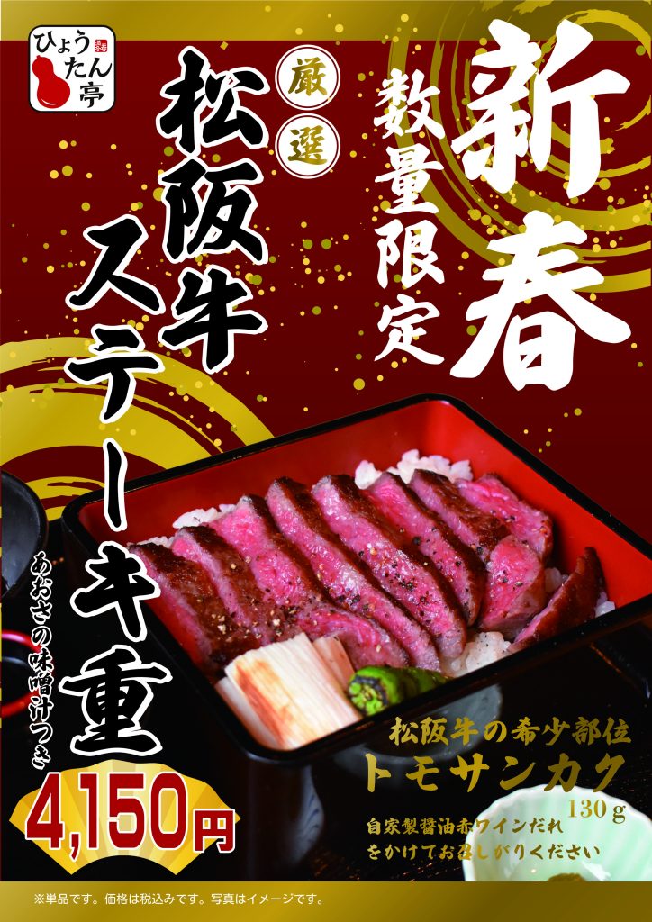 お食事処ひょうたん亭では年始に数量限定メニューをご用意いたしました。